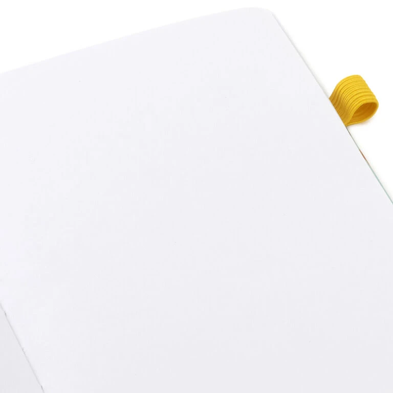 - Hardback notebook features potted plant illustrations on a mint green background and gold foil lettering.